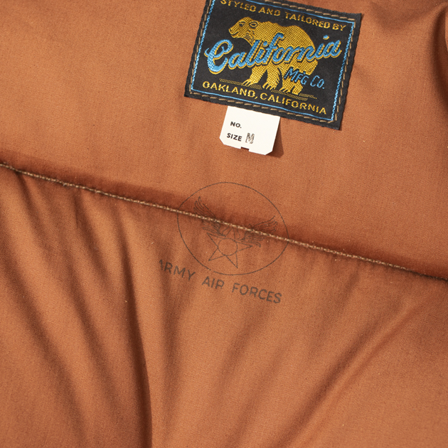 米陸軍航空隊がA-2用レイヤリングシステムとして開発したダウンベストという架空のストーリー通り、ライニングにはAAFマークがスタンプされます。