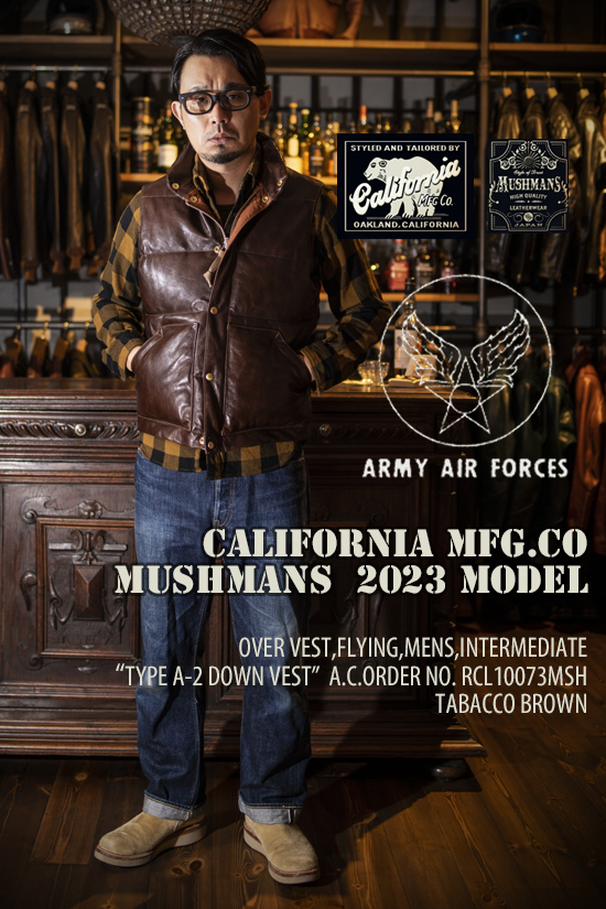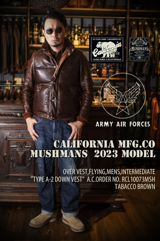 MUSHMANSで最も人気のあるA-2はRainbow Country(California Mfg.Co)でありますから、このブランドとコラボするのが最も良いと判断しました。何と言っても、A-2に使用しているホースハイドがそのまま使える訳ですからね。