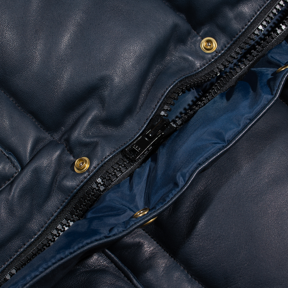 今回ダウンベストを生産するにあたり、革、中綿(ダウン)、パターンの全てに拘り、一つずつの素材に時間をかけて仕上げている。