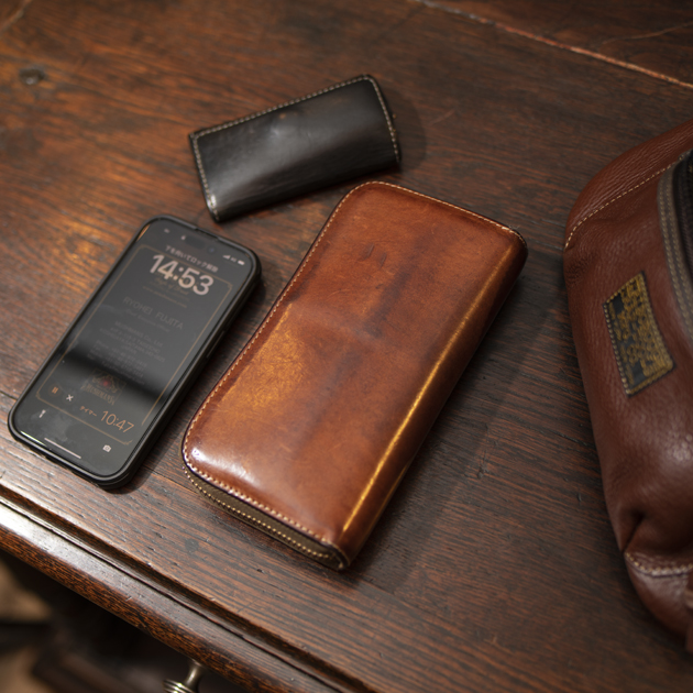 レザーアイテムであっても、重厚過ぎないのはサイズ感の恩恵。