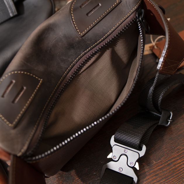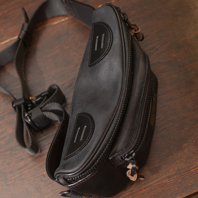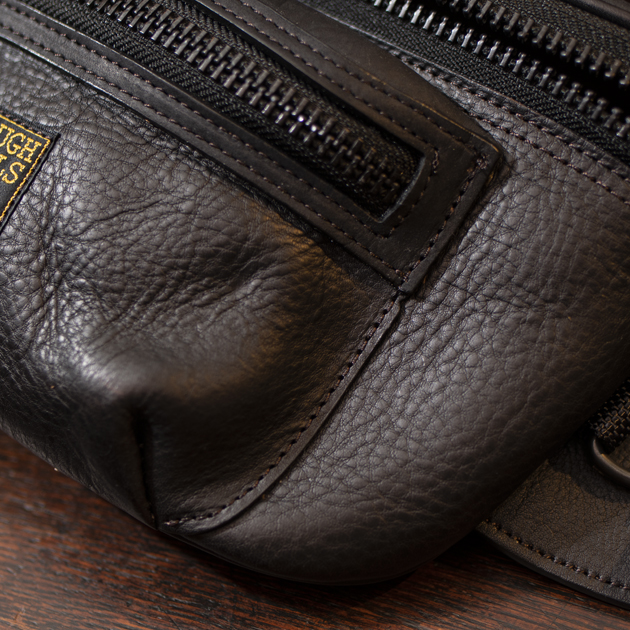 さらに強度を要するポイント(BAG底面やポケットフラップ)にはオイルドレザーを使用し、ギアとして充分に考えられた仕様になっているのもポイントです。