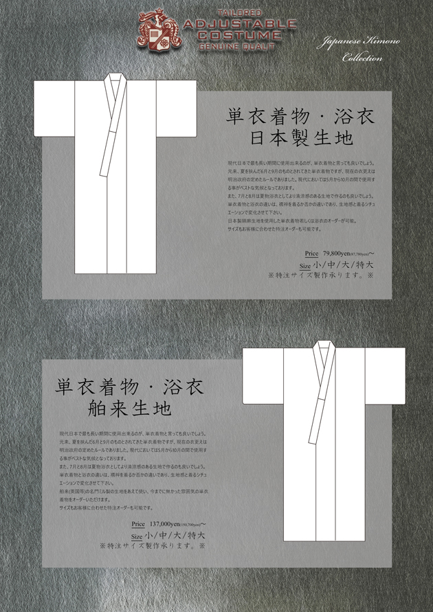 あまり着る機会が無いと思っていた方でも、あると色々使えたというお声をいただくもので、大人であれば一着は持っていただきたいものでございます。