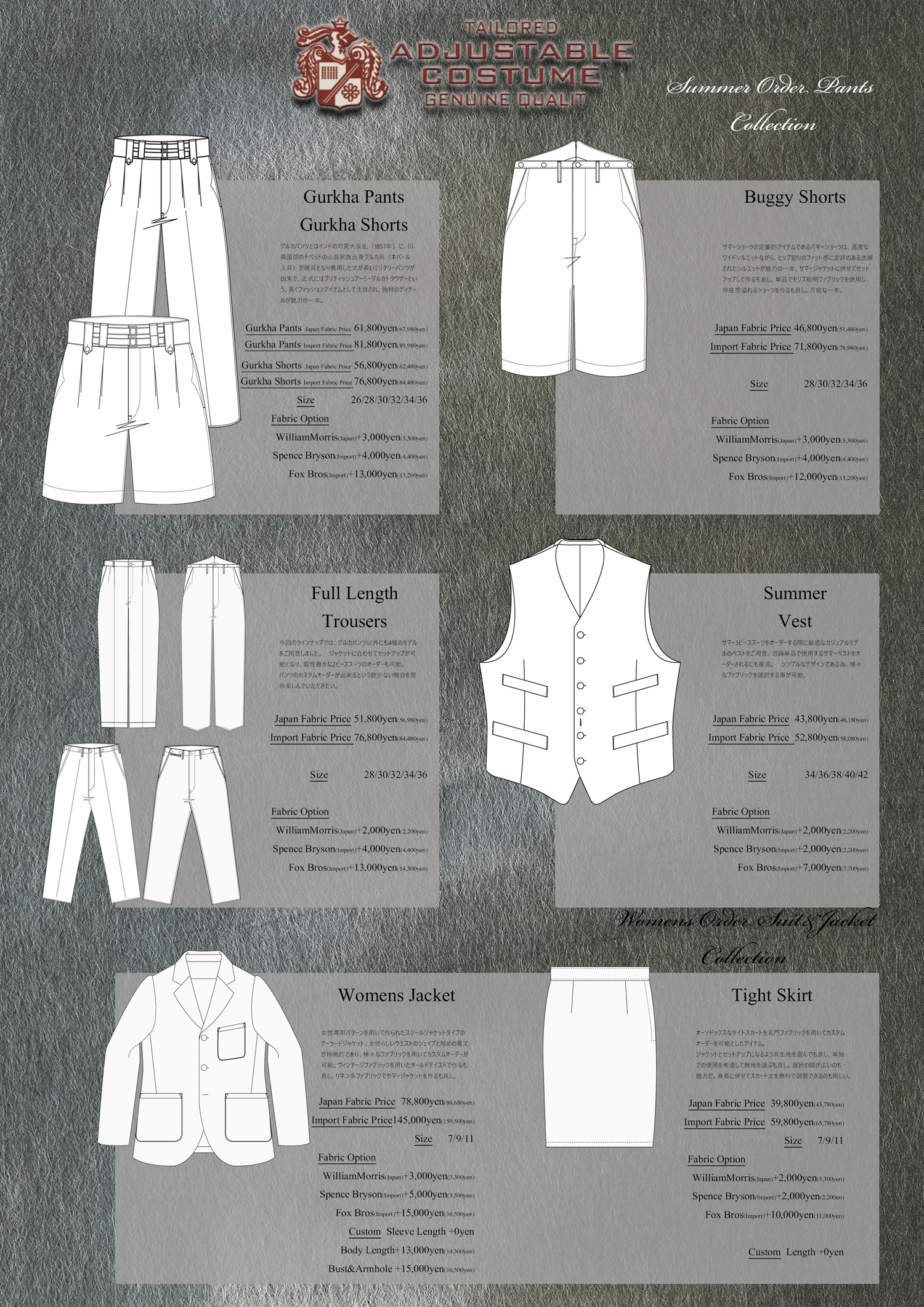 また、女性のお客様用のジャケット+スカートでのスーツオーダーも可能です。