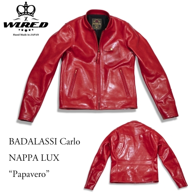 シングルスタンドカラーのライダースは、レーシングジャケットと呼ばれる事もあるデザイン。このパパベロ仕様はまさにレーシングジャケットと呼ぶに相応しいオーラを纏う。この美しい発色によって、スピード感を放つ仕上がりとなっているが、何年も着用する事で赤黒く変化していった最終形態は、長年これを着用したオーナーにのみ味わえる至高のカラーだ。