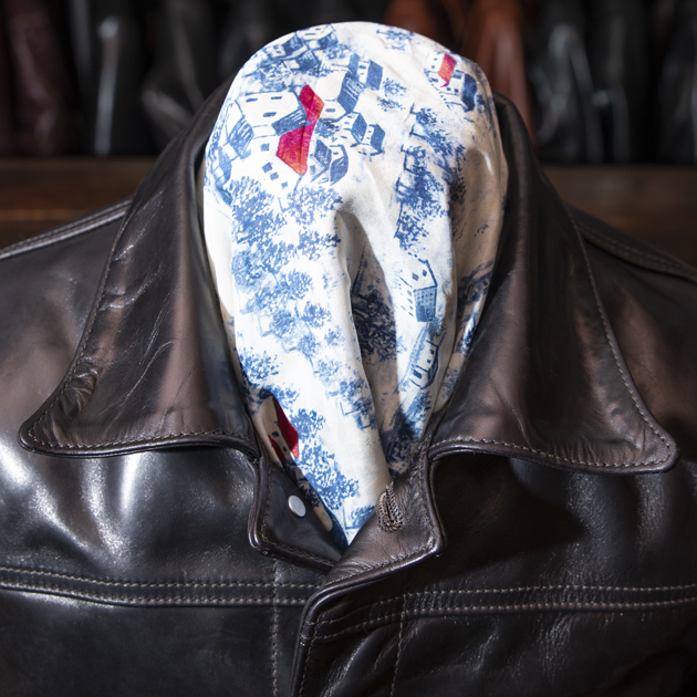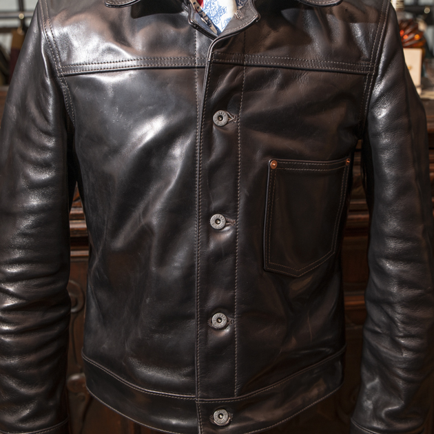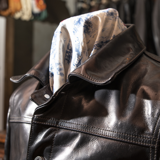 このFRIVOLOUSを新たにリリースした2017年当時、所謂デニムジャケットスタイルのレザージャケットがもてはやされ、猫も杓子も、、な状態となっていた事に薄っぺらさを感じた事で開発したモデル。