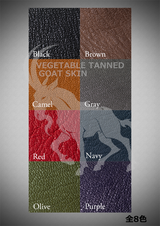 表情豊かな国内鞣しのゴートスキン(山羊革)をレギュラーマテリアルに。