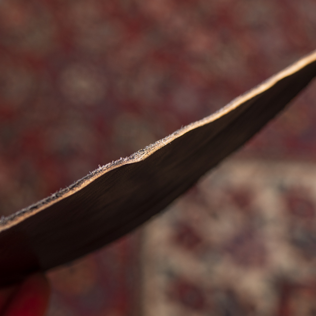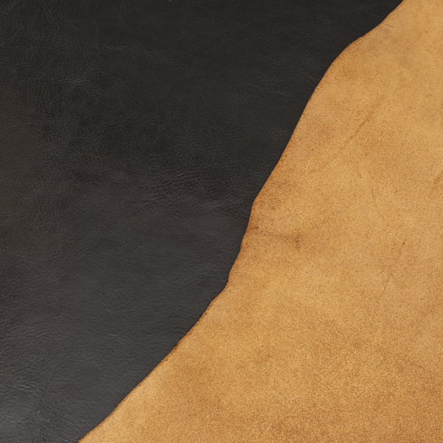 この素材もBADALASSIバージョン同様、下地にライトブラウン色を使用し、アニリン(染料)のみで黒色着色を施している。