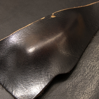 私達の考えでは、ピグメントで黒色着色してしまうと、目に見えている物は革ではなく塗膜であると感じてしまう。