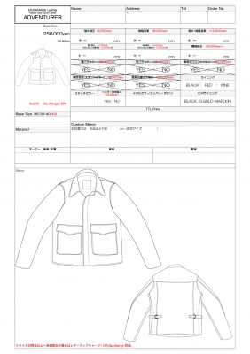 このように、一点一点オーダーシートを製作し、レザーを始め、ステッチカラーやメタルパーツ、オプションの有無について決めて行きます。