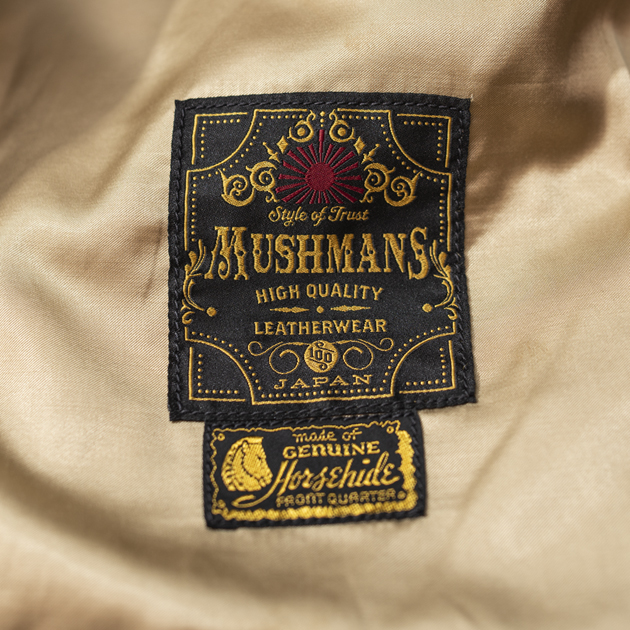 内ポケ下にはMUSHMANS Leatherラベルと、ホースハイドラベルを添付。