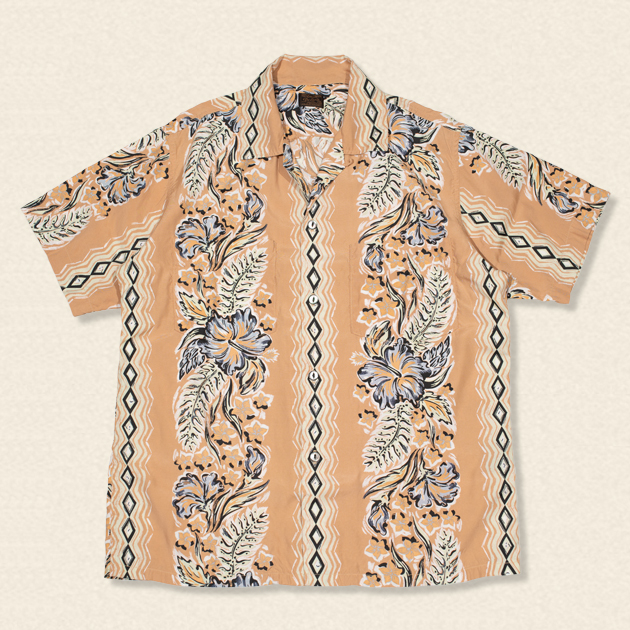 希少な当時のヴィンテージファブリックの柄をデラックスウエア流にアレンジし蘇らせた、現代とヴィンテージが融合したハワイアンシャツとなっております。