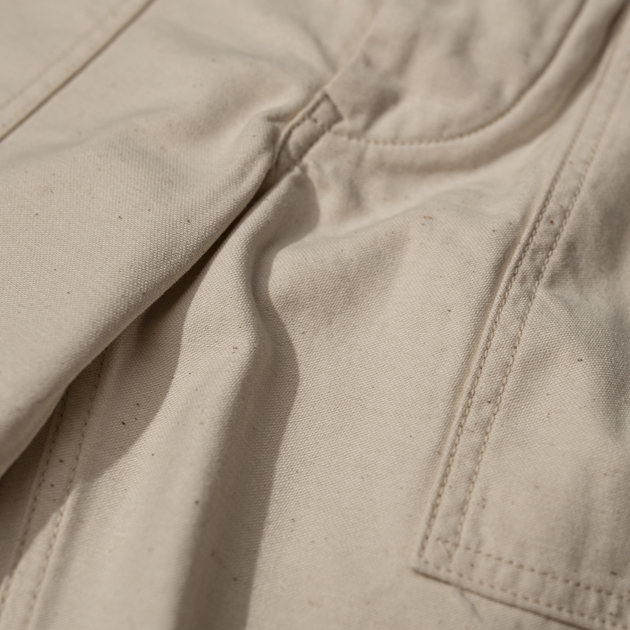 この生地はシャツ地として使用したりと、かなり薄手の生地ですので、製品として安心感を持たせる為に二重仕立てとしているのが、コリンボの良心と言えるでしょう。