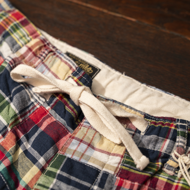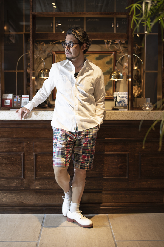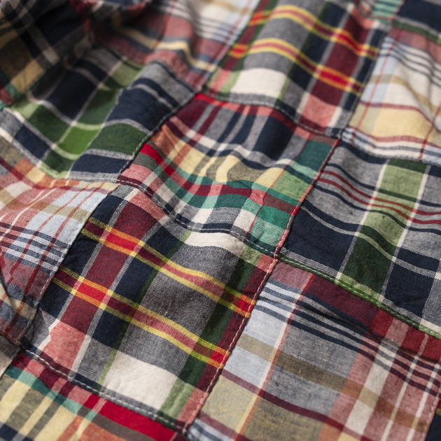 80'sを彷彿とさせるマドラスチェックは、インド南東部のマドラス地方(現チェンナイ)で伝統的な 技法で生産されている織物で糸を手染めした後、パワールームと呼ばれている半自動織機 で時間をかけて織り上げ、天日でゆっくり乾かした生地。