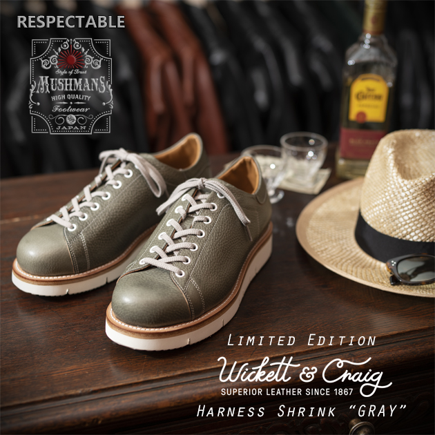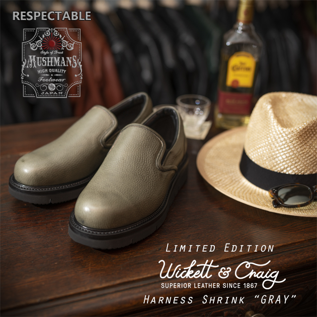 昨年よりMUSHMANS Footwearのカスタムオーダー会で選べる限定レザーとして採用しているマテリアル(Black/Brown)と同様のスペックで、初採用のGray(グレー)カラーの登場です。