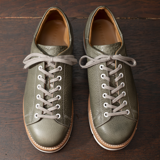 このグレーカラー、まさにこの"All Leather Sneakers"の為に作られたような、ベストマッチする発色とシボ感が魅力。