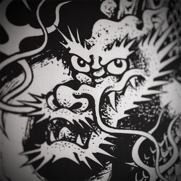 躍動感溢れる瑞雲昇龍、勇壮果敢なこの構図は、MUSHMANS15周年手ぬぐいを製作する為にデザインされました。