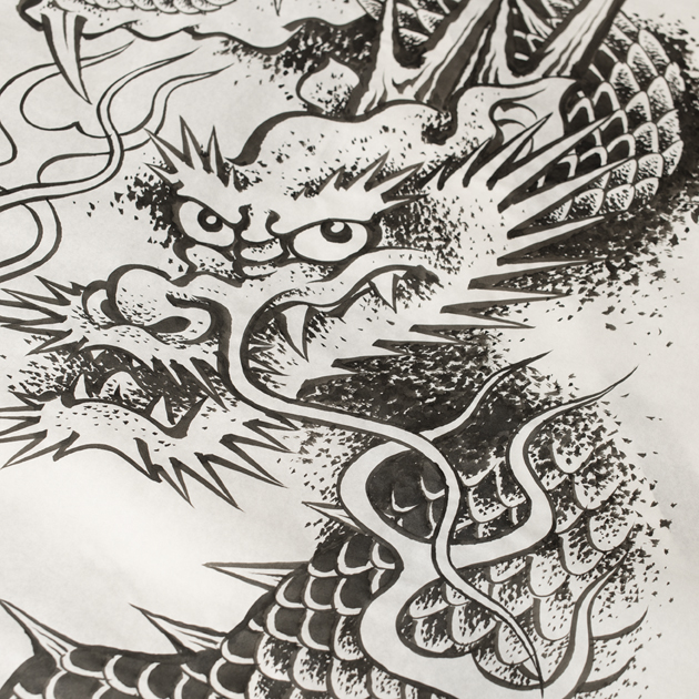 この彫猿氏によって生み出された"瑞雲昇龍図"は、水墨画で描き下ろされものから版を起こしております。