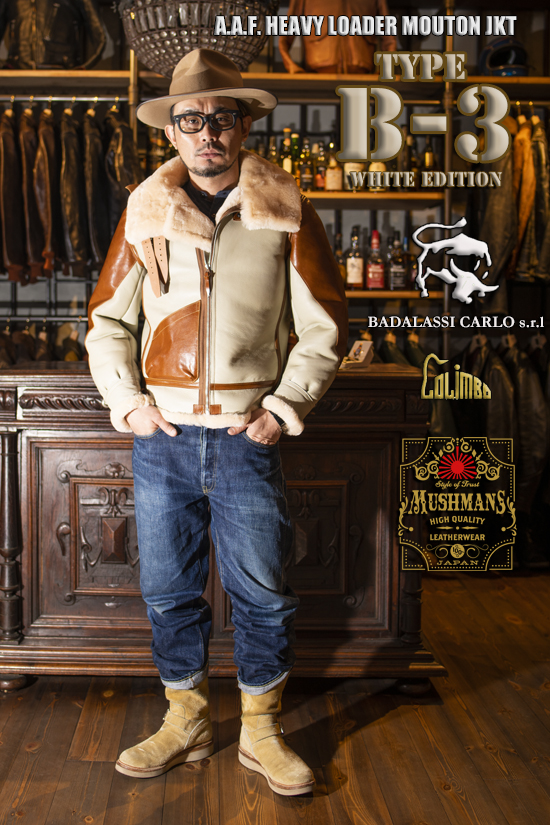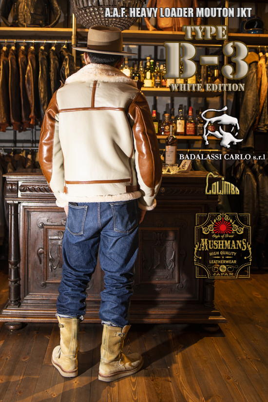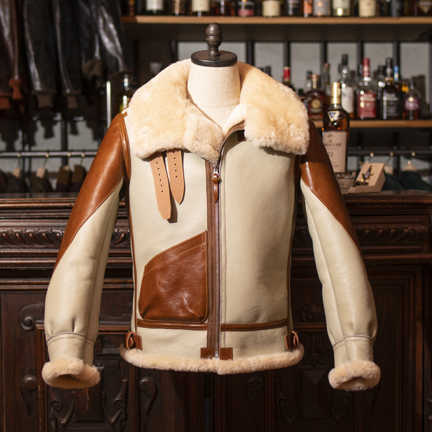 このB-3のように、ホワイトバージョンは極めてスタイリッシュで、フライトジャケットファンやレザー愛好家が憧れるフライトジャケットの一着であるものの、汚れを気にして所有しても着込めないという方も多かった。