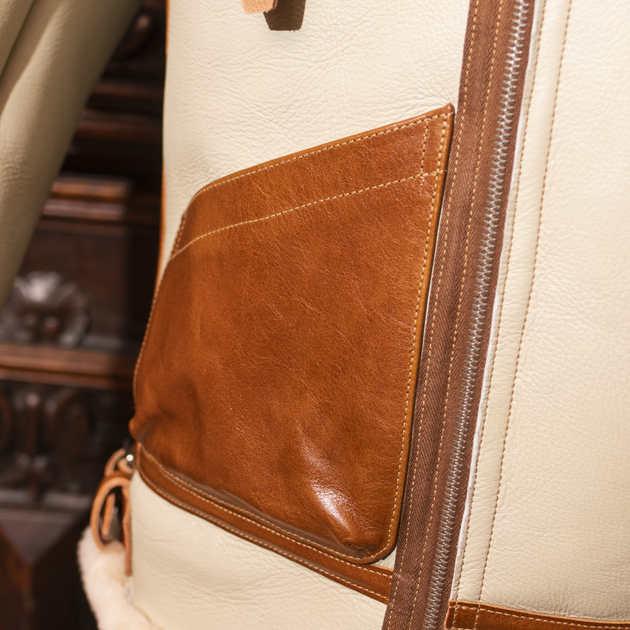 ヴィンテージでも散見される、ホワイトのノンコーティングムートンを使用したモデルかと思いきや、そうではございません。