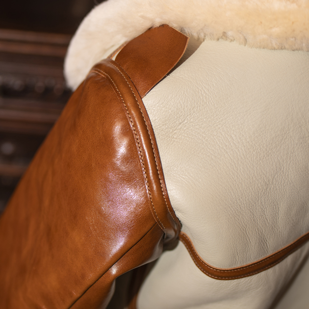 それは、遮風用のシェル(表側)と保温用のライニング(内側)は互いに密着している事(最も好条件なのは一体である事)で最も高い冬季性能が出るとされておりました。その要件を完全に満たす素材こそ、このムートン(羊革)だったという事になります。