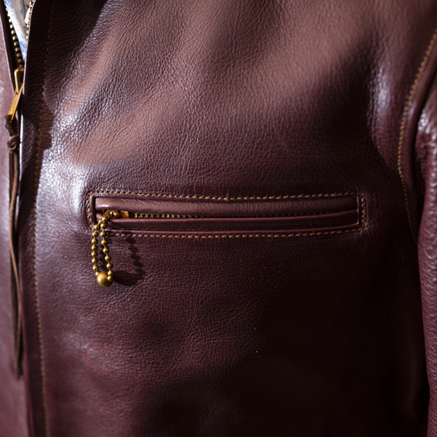 ラッカー等の仕上げ剤を使用せず、自然な状態で仕上がっており、ワックス分が多い為、着用毎に光沢が増すのもレザーエンスーを唸らせるポイントでもありますね。
