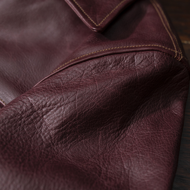 この複雑な発色はフラットなテクスチャーよりも、スジ感シボ感が強いバッファローハイドがマッチします。