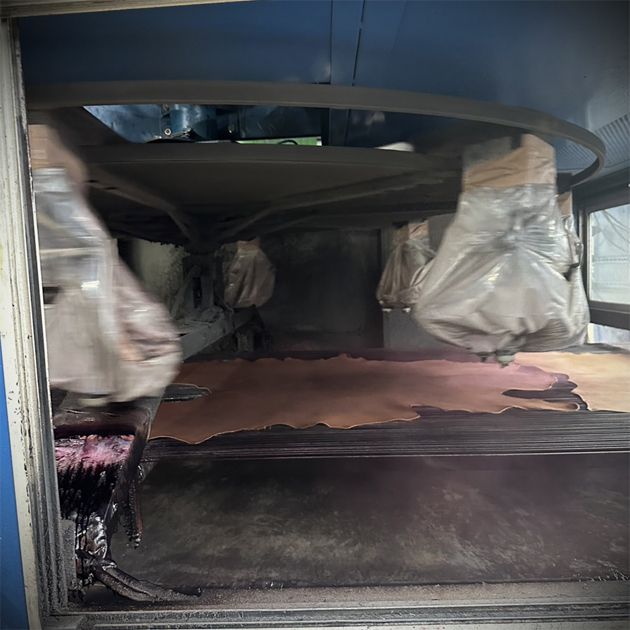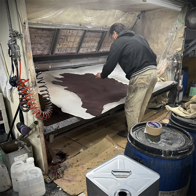 これを何度も繰り返し、サンプルでOKが出た革の色と見比べ、均一化をして行きます。