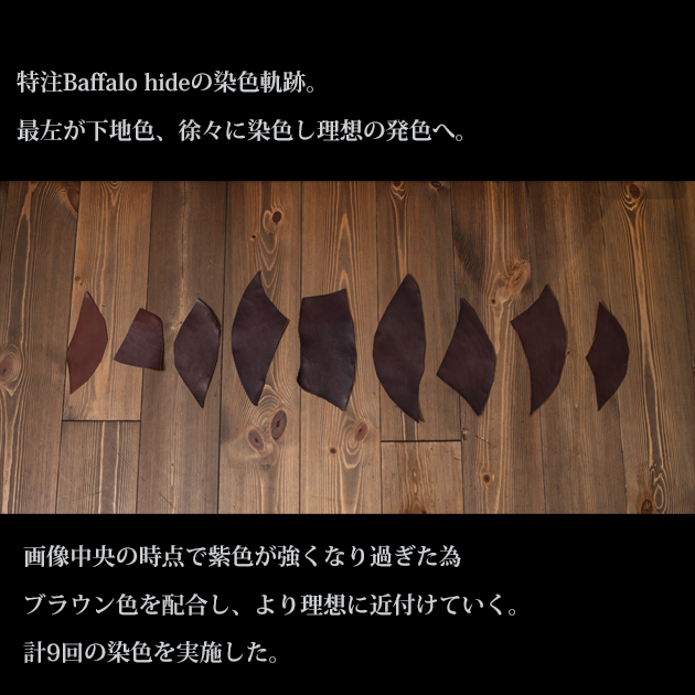 このバッファローハイド、発色を極限まで追求し、幾度となく色調整を実施し完成させている逸品。