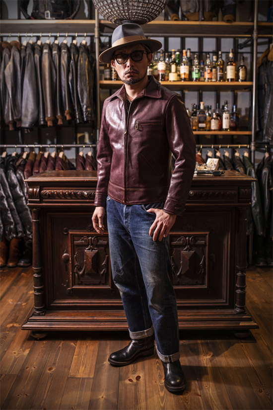 モデルは勿論Rainbow Countryの"HERCULES"でございますが、レギュラーアイテムとは異なり、チンストラップを廃してよりシンプルなジャケットを目指しております。