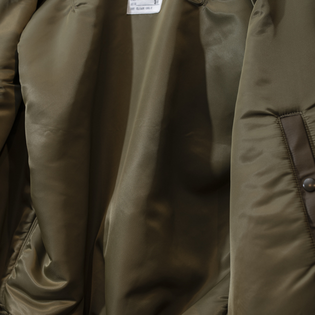 ライニングはウールパイルが使用され、それをオリーブドラブNo.71と呼ばれる色彩のナイロンツイルライニングで包まれます。