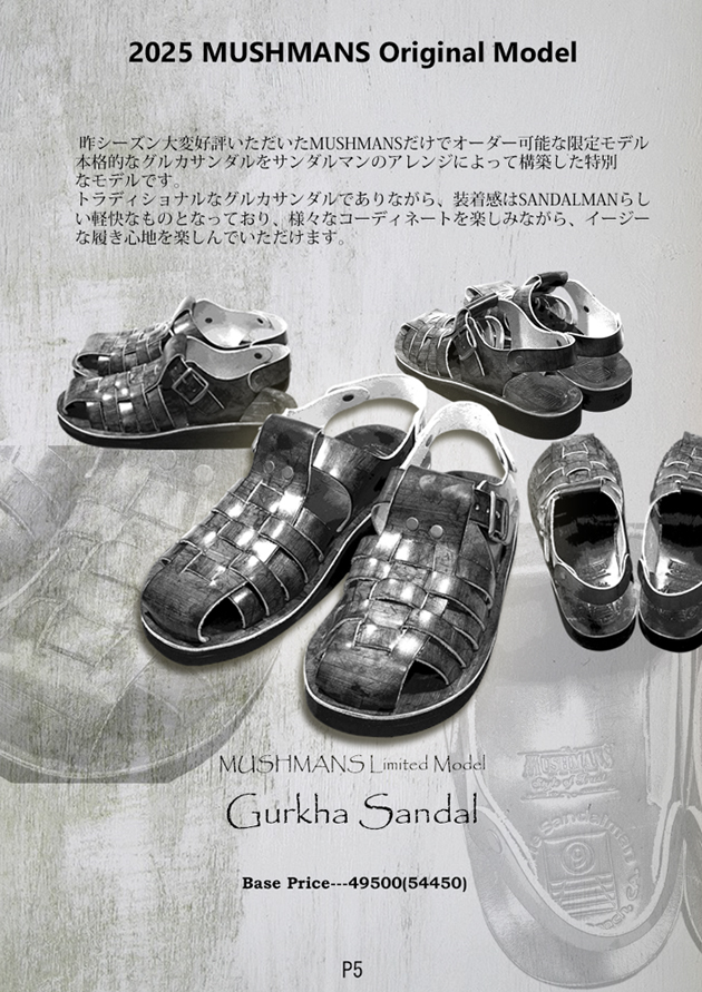 MUSHMANSオリジナルモデルの"グルカサンダル"も今シーズンは継続してオーダー受付が可能という事になりましたので、内容が盛沢山です。