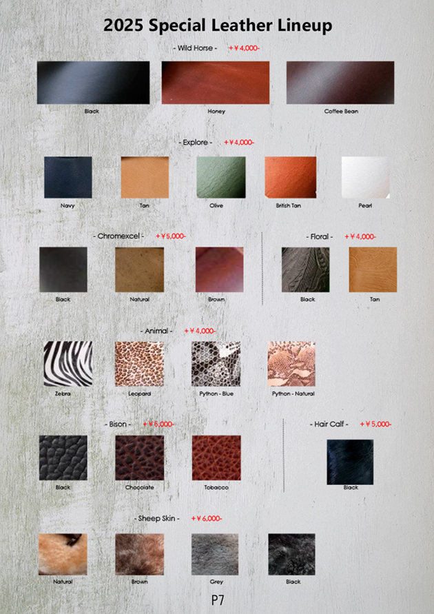 これだけスペシャルレザーを選べるのもSANDALMANの強みです。
