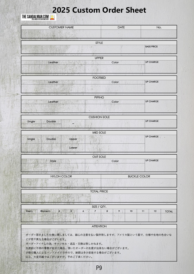 ↑↑こちらがオーダーシートとなりますので、遠方のお客様で御来店が難しい方は、このシートに仕様を記入してFAXもしくはメールで送信いただければ、オーダー受付が可能です。
