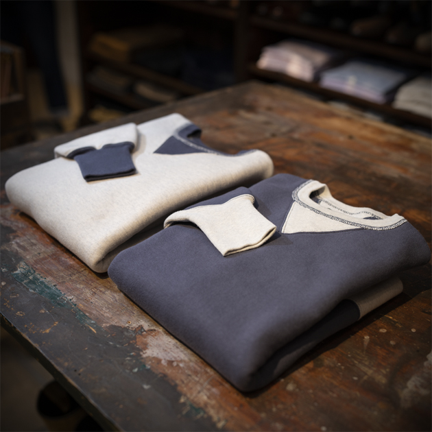 この編地は裏毛仕様となっており、長いシーズンに渡って使えるのも嬉しいですね。