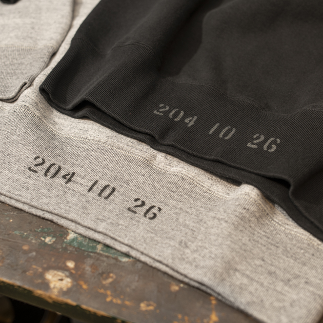 先に御紹介したプレーン仕様の"Keystone Sweat"と同様の編地を使用し、同様のデザイン・ディテールとなっております。