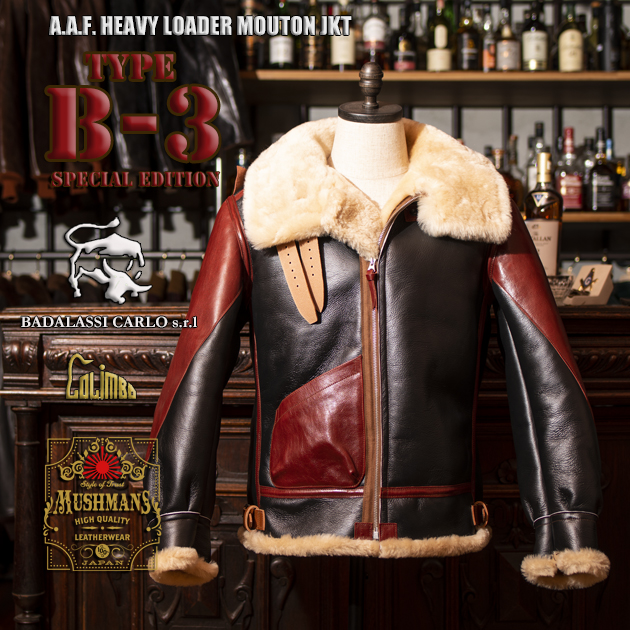 こちらはDark Sealカラーのメインマテリアルに、先日一瞬で予約完売となったA-1同色のBADALASSI"Coccinella/コッチネーラ"を使用したMUSHMANS別注エディション。