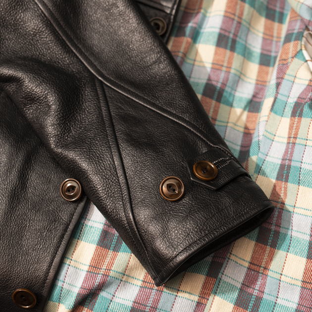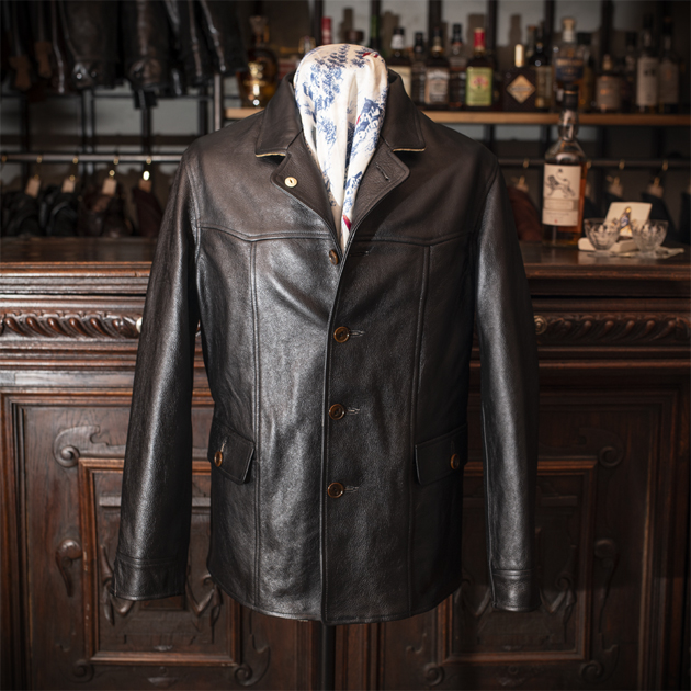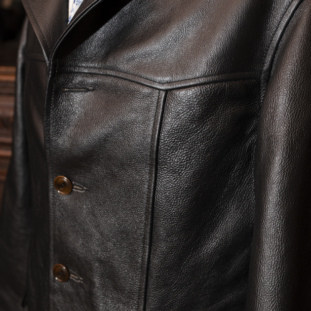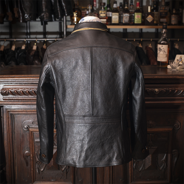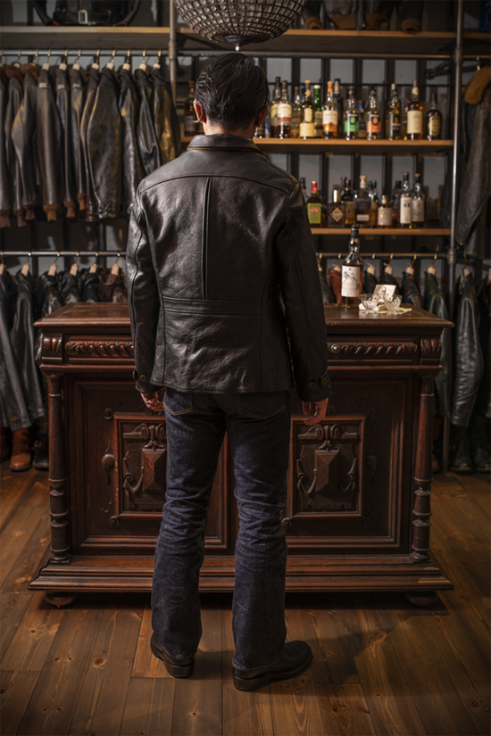 このジャケットは極めて粗野な雰囲気を演出する為にフルグレインレザーを用いて作り出されております。