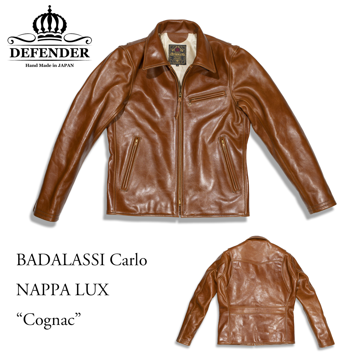 経年変化を楽しむに最適なCognac(コニャックと読む)カラーを使用し、スタンダードでありながらレザー玄人が好む仕様でオーダーされた一着。長くじっくりと楽しむ事を念頭に構築された実直な仕様。
