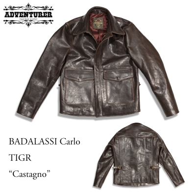 インディジョーンズジャケットらしいダークブラウン色のCastagno(カスターニョと読む)であり、革表情が最もラギッドなTigr(チグリと読む)の表情が相まって、劇中のソレ以上に躍動感あふれる一着となっている。