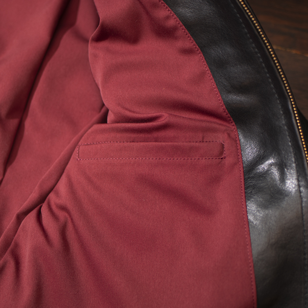 サイドポケットにもZipポケットを採用しているが、ライダースというよりもスポーツジャケット的に着こなしたいという方は、Zip無しの片玉縁ポケットに変更する事も可能だ。