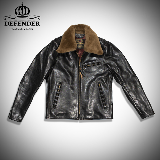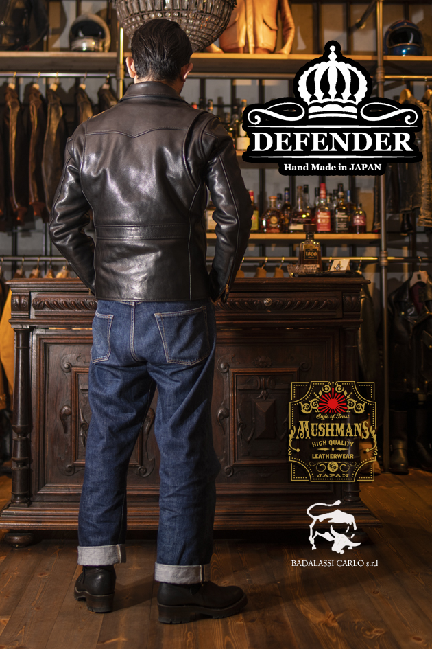 昨年採用し、こちらも多くのお客様よりオーダーをいただいたBADALASSIレザー【Tigr/チグリ】仕様のジャケット、これが何とも言えない圧倒的な存在感を演出し、このDEFENDERデザインにマッチしている。