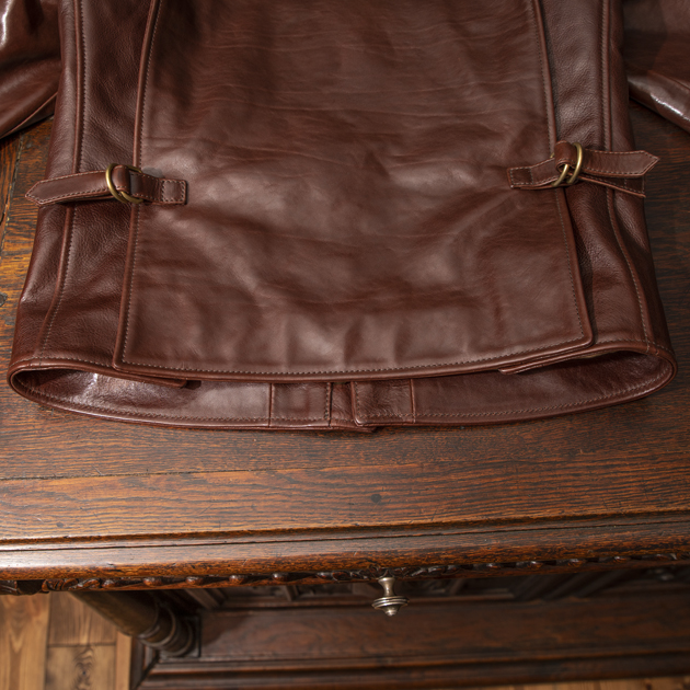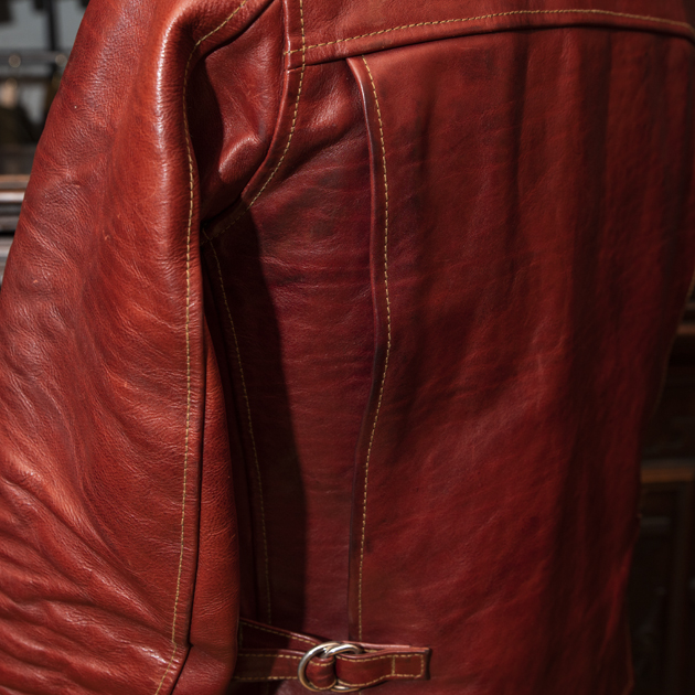 手間が掛かるイコール時間を要する仕様となった事で、ダブルライダースを製作するよりも遥かに生産効率が低下し、革素材もダブルライダース以上に使用する事となった。