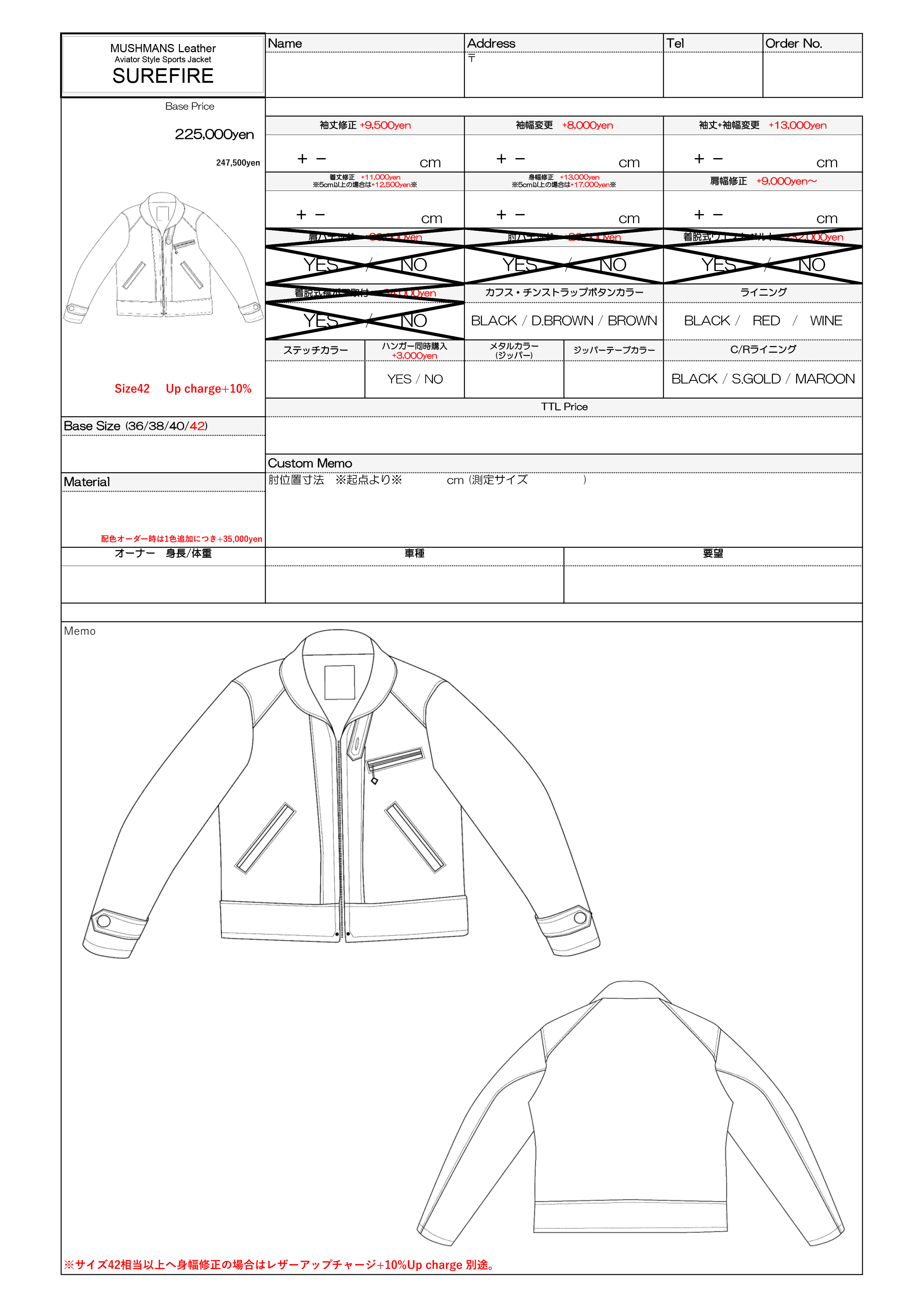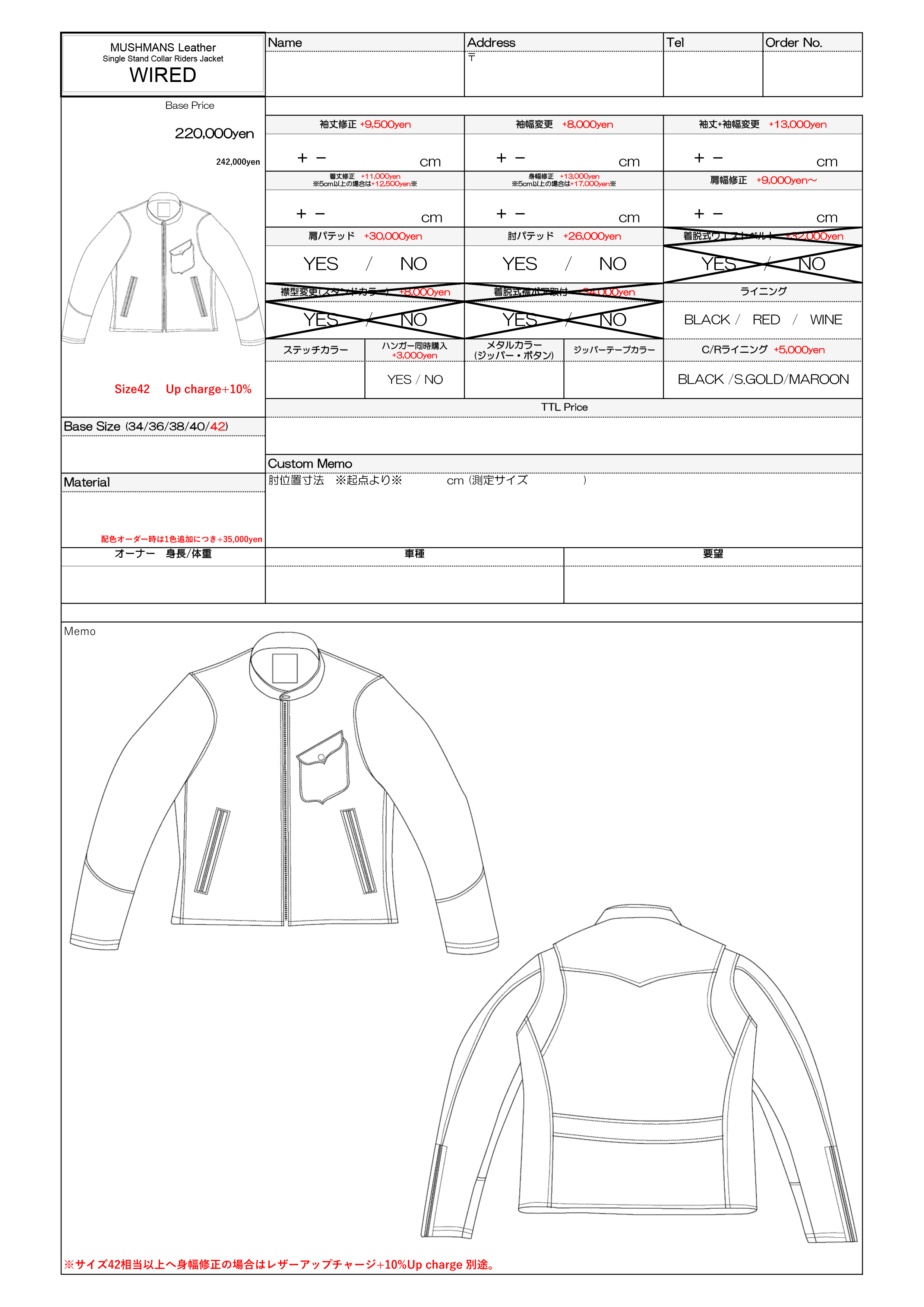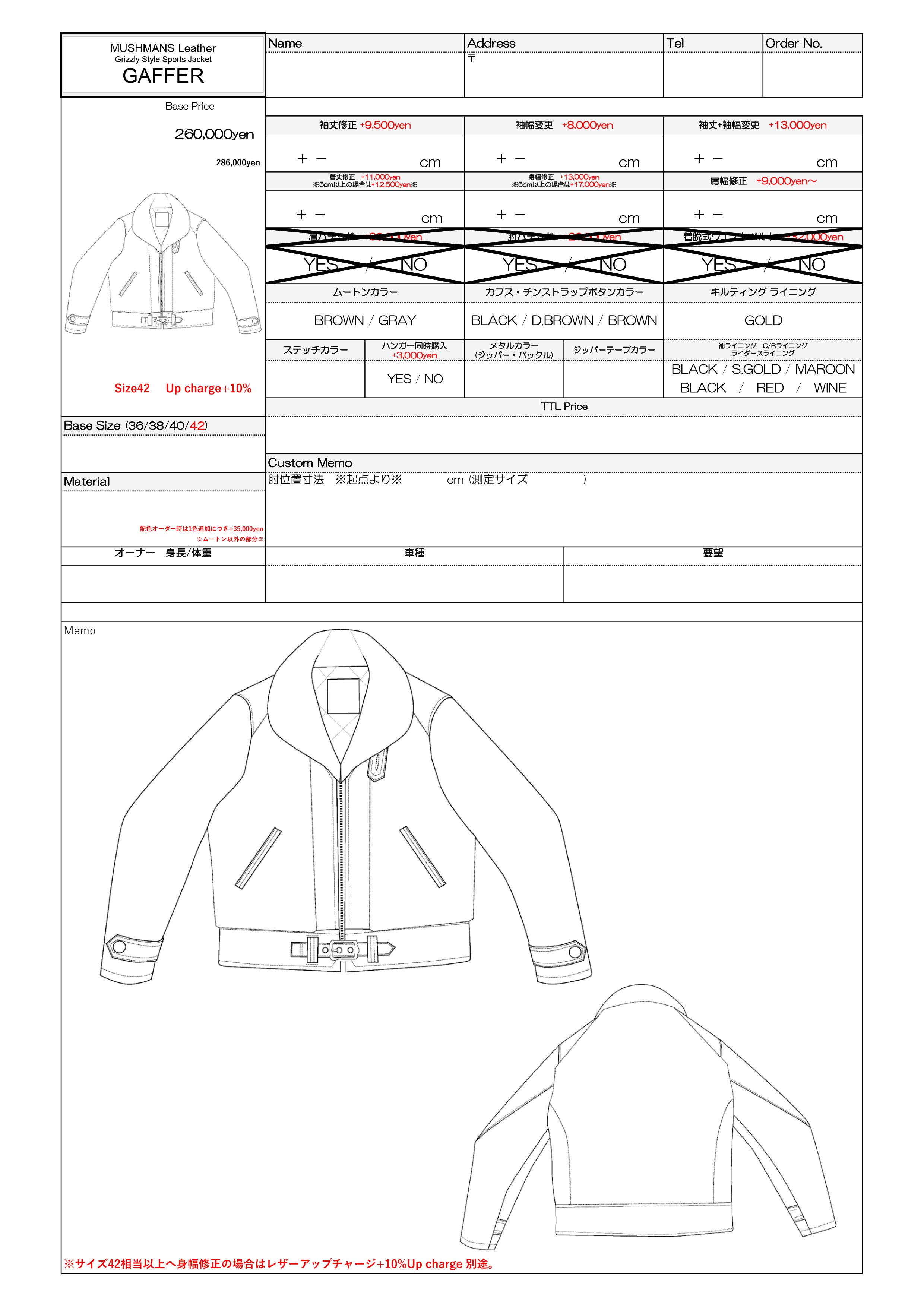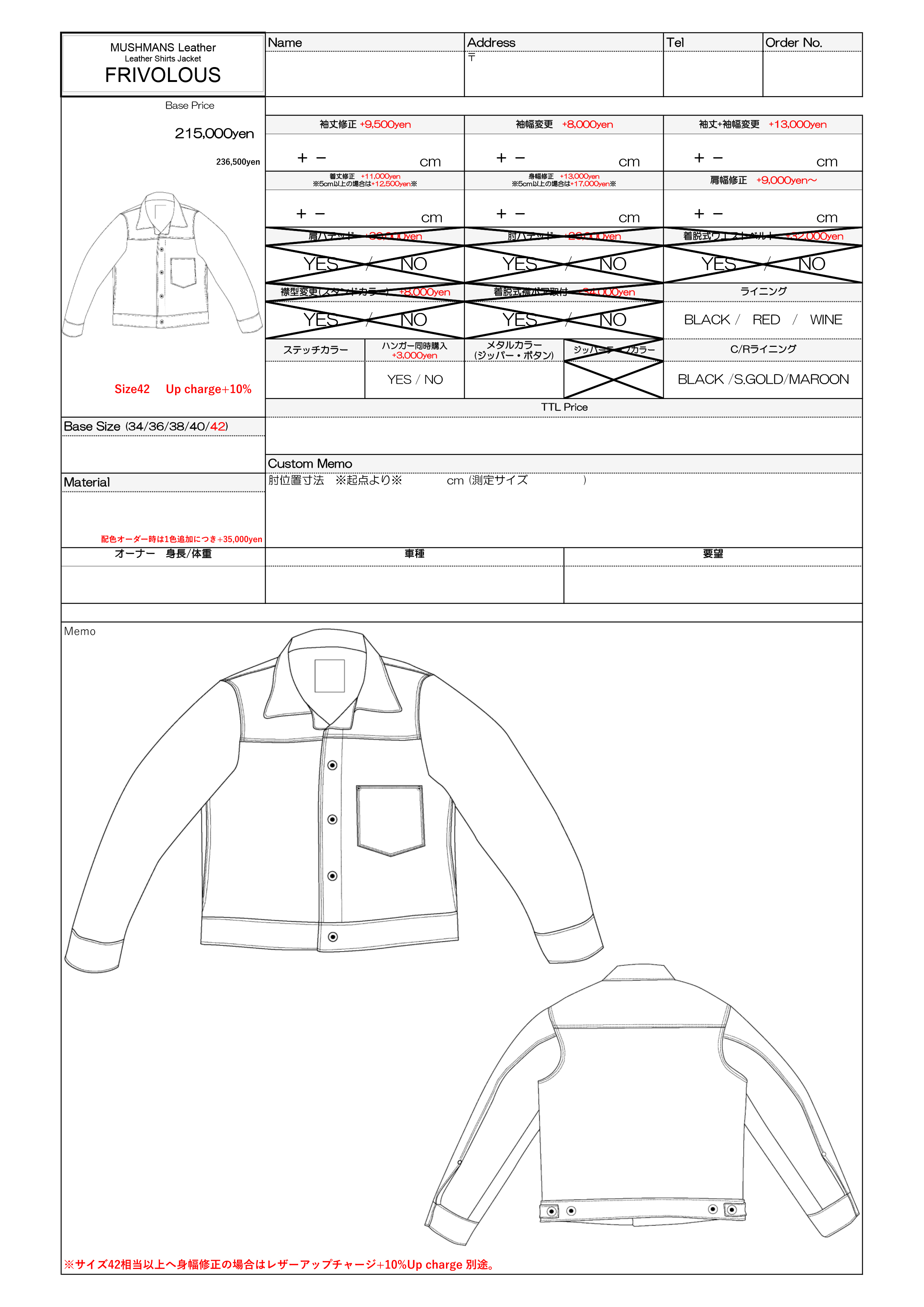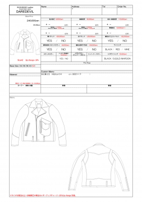オーダー時に使用いたしますオーダーシートを掲載し、どういったオーダーが出来るのかを表現させていただきます。