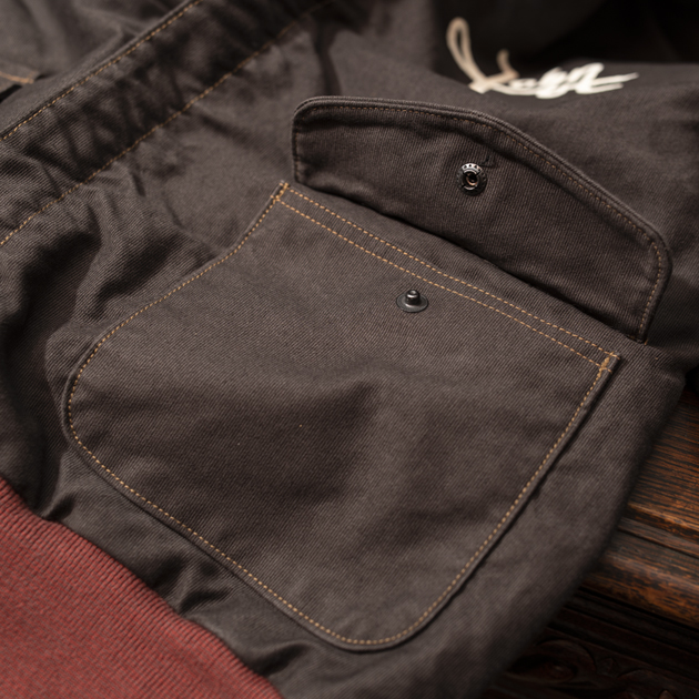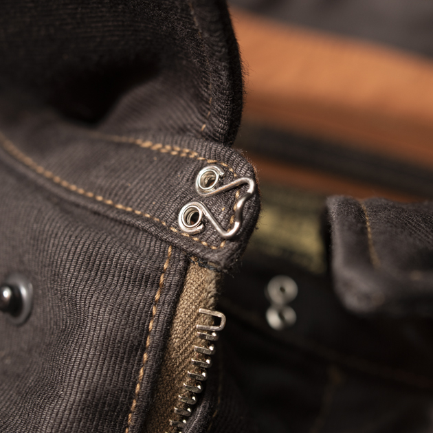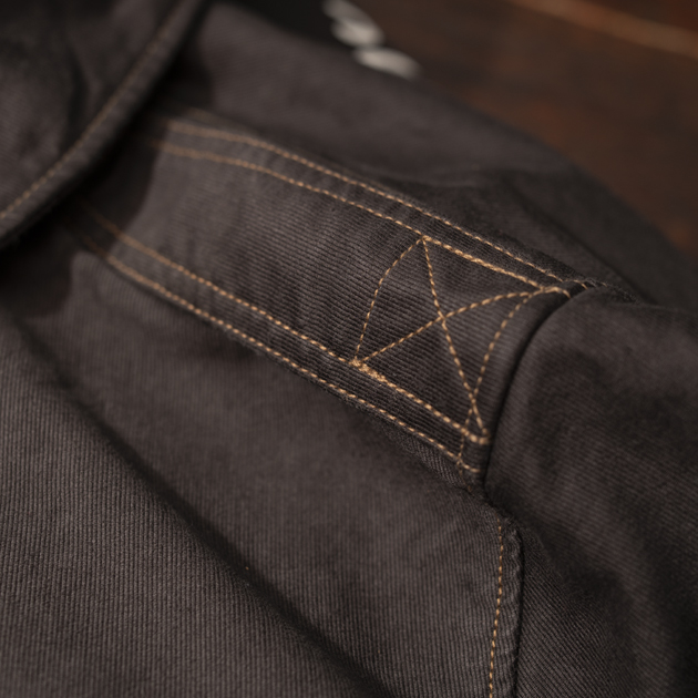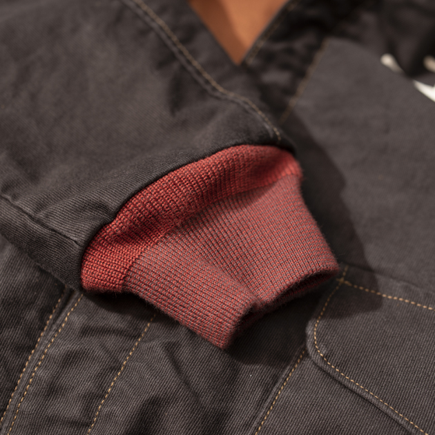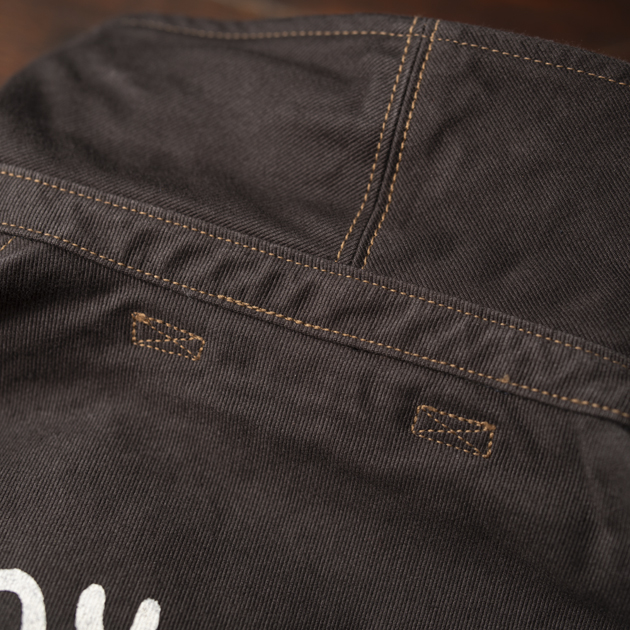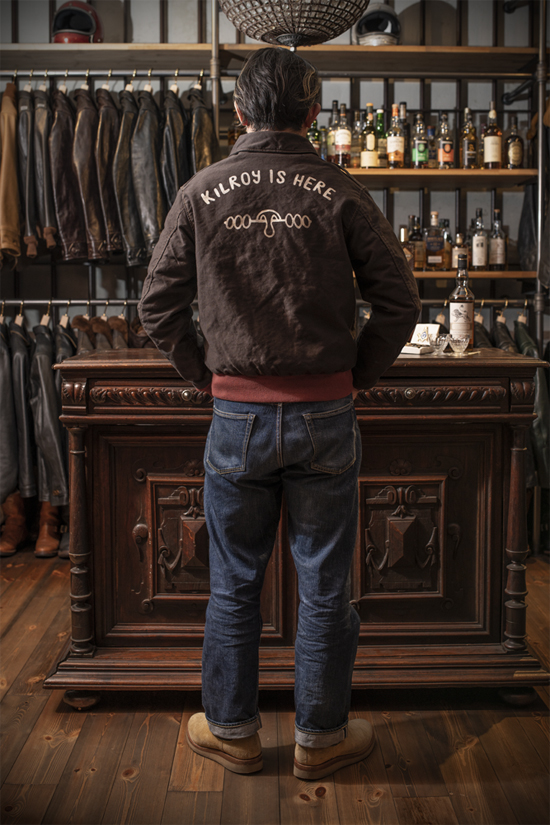 ROUGHWEAR社のA-2をもとに構成されている為、台襟による襟の存在感も"らしい"ものに。