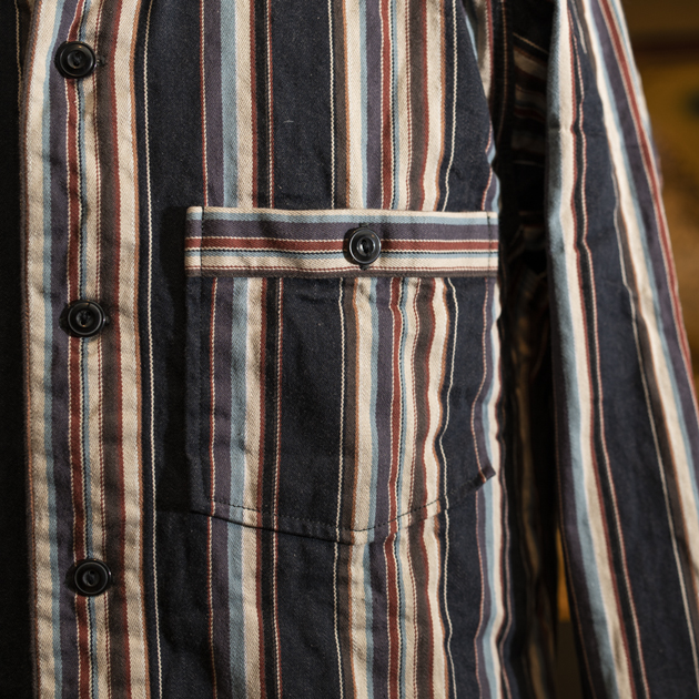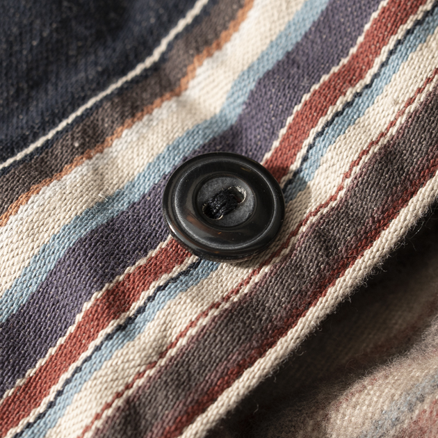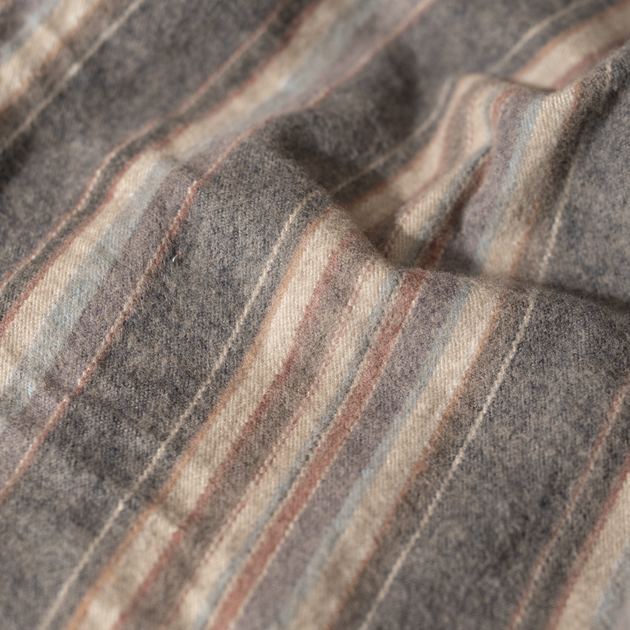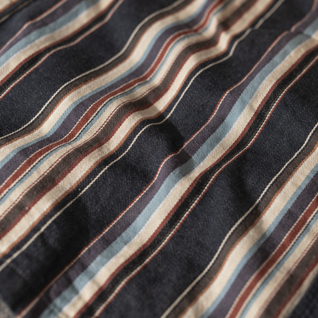 この複雑な配色のストライプは、手織りにも見える素晴らしい味わいを持っております。