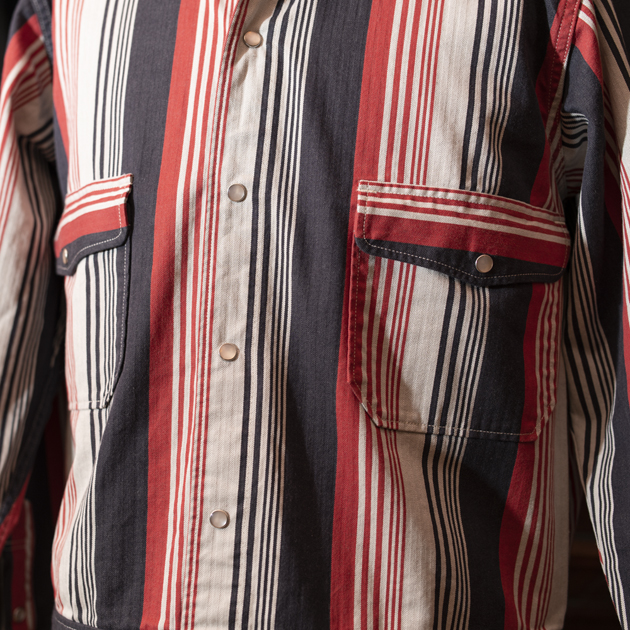 このディテールは非常に好みなのですが、さらにこのアイテムに使われるマルチストライプが物凄くカッコイイ訳でございます。