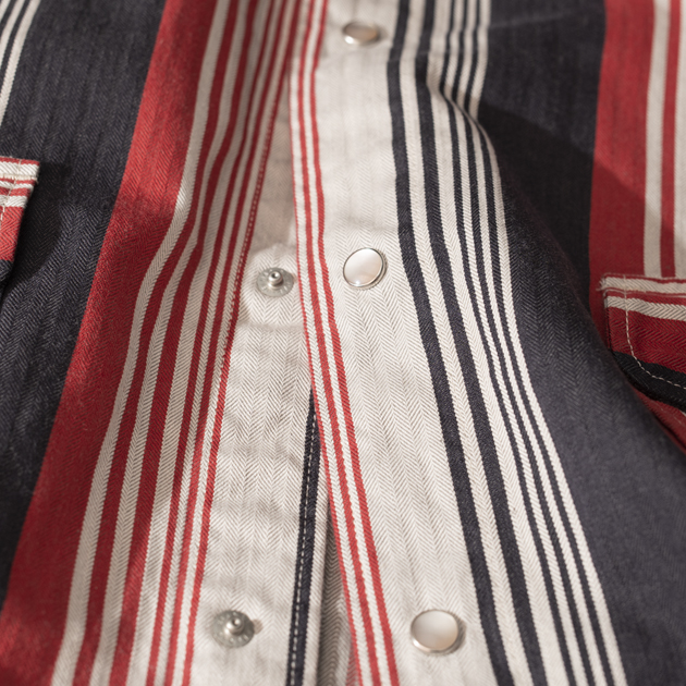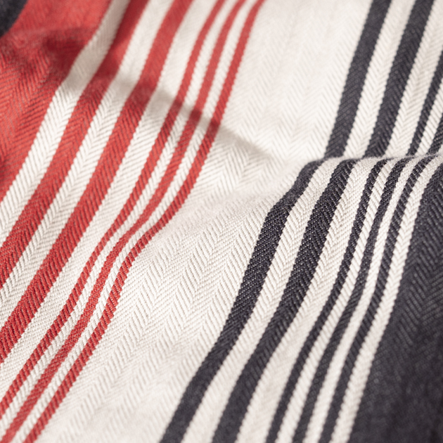 ヘリンボーンツイルのマルチストライプN.O.Sファブリックです。