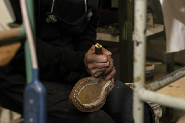 同じグッドイヤーウェルテッド製法であっても、大量生産品はラスターのみで終わらせてしまう事もあると言われるものだが、この工場ではしっかりと手仕事が入るのがポイント。