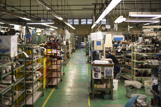 工場内に入りまず驚く事は、靴工場にありがちな雑然とした雰囲気が全く無く、整然とした工場内。