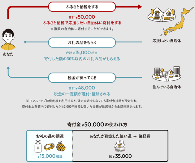 ↓こちらは50,000円をふるさと納税した場合のイメージです。